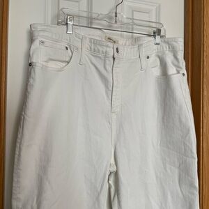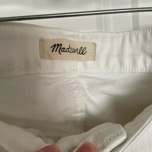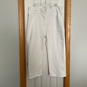 Like new pair of Slim Wide-Leg Jeans in Tile White from Madewell. Size 35. These jeans have a slightly cropped fit and a good amount of stretch. Crisp white color. No stains or flaws!