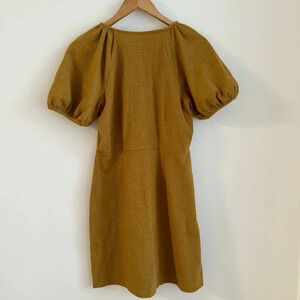 Madewell Small Texture & Thread Puff-Sleeve Dress Mustard Yellow