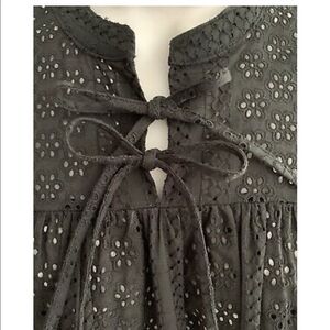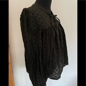Madewell Small Eyelet Double-Tie Peasant Top Black Long Sleeve Style # K3808