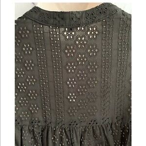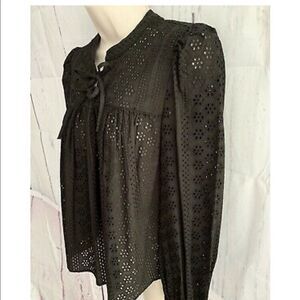 Madewell Small Eyelet Double-Tie Peasant Top Black Long Sleeve Style #K3808