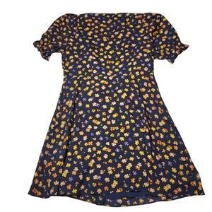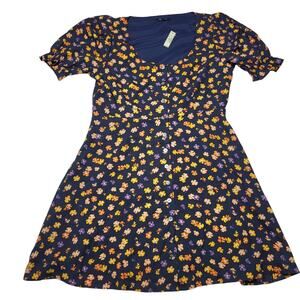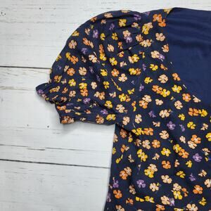 Madewell Smock Puff Sleeve Button Front Mini Dress Floral Blue Orange Small