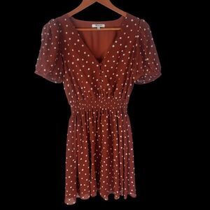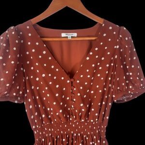 Madewell Smock Waist Dress Inkblot Polka Dot Mini Dress Rust/White Sz XS