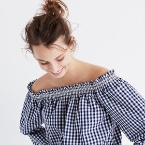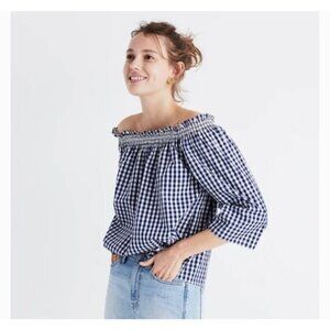 Madewell Smocked Gingham Off-the-Shoulder Top XS