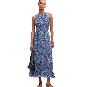 Madewell Smocked Halter Midi Dress Blue Floral Sz 6 NWT Romantic Feminine