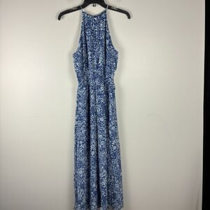 Madewell Smocked Halter Midi Dress Blue Floral Sz 6 Romantic Feminine