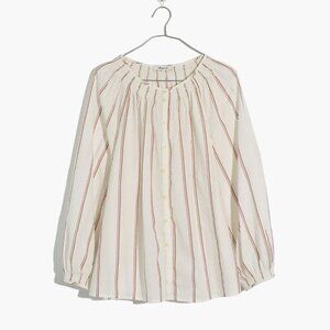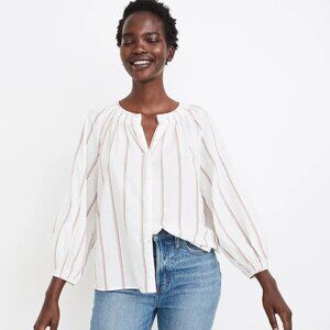 Madewell Smocked Neck Raglan Top in Clipdot Stripe NWT!