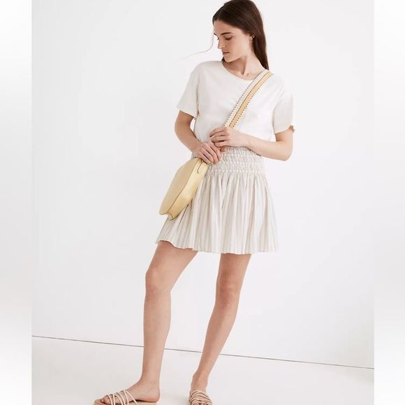 Madewell Smocked Pull-On Mini Skirt in Stripe