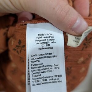 super soft cotton gauze Madewell smocked mini skirt. really flattering on. orange/rust color