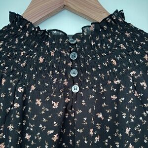Flowy floral-print chiffon, this pretty top has smocking at the neck with a delicate ruffle around the collar.