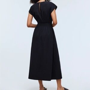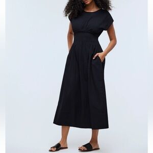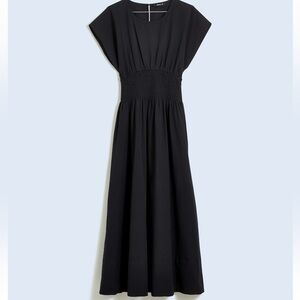 Madewell Smocked-Waist Midi Dress in True Black Seersucker size XS NWT NP123