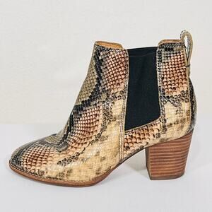 Madewell Snakeskin Boots Womens 6.5, Leather Tan & Black, 2.5" Block Heel, Pull On. Excellent Condition.
