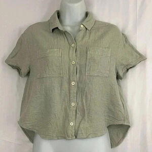 Madewell Soft Green Blouse XS Linen Blend Women's