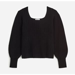 Madewell Soft Wool-Blend Square-Neck Pullover Sweater 2XS Black Blouson Sleeve