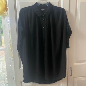 Madewell Solid Black Short Sleeve Oversized Button Up Shirt Blouse Plus Size XXL