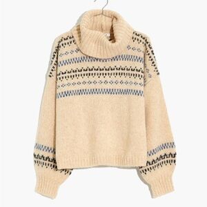 Madewell Somervell Fair Isle Turtleneck Sweater XXS Oversized Cream Knit Crop