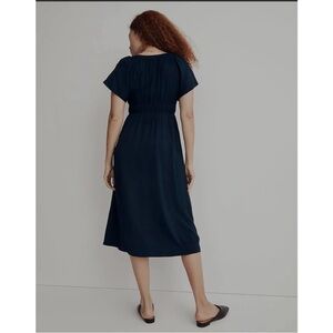 Madewell Sophia Split Neck Short Sleeve Midi Dress Navy size small