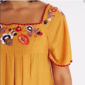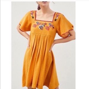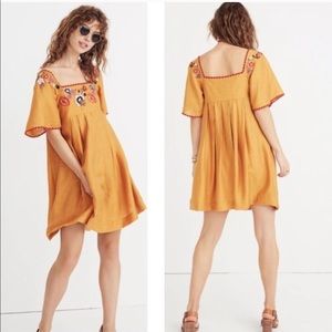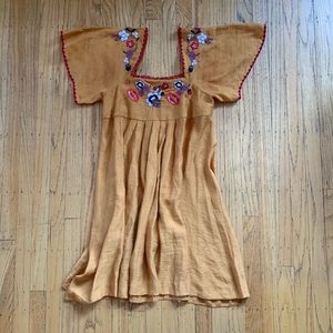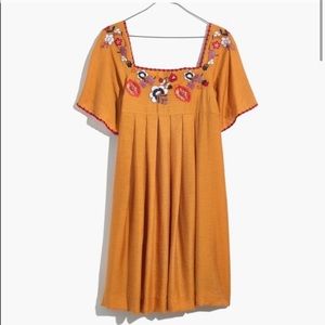 Super cute dress from Madewell. It’s marigold with embroidery around the neck and sleeves. Loose fit and a nice, lightweight material. Color is washed out in photos, but dress color is as pictured in stock photos. Size XS, great condition.