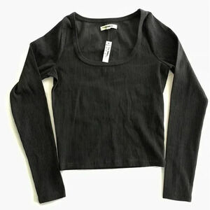 Madewell Square Neck Long Sleeve Crop Tee in Sleekhold Black - size XS, new with tags! Please note manufacturer marks through tags to prevent returns.