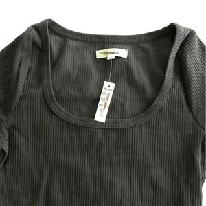 Madewell Square Neck Long Sleeve Crop Tee in Sleekhold Black XS NWT
