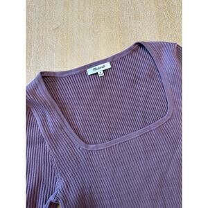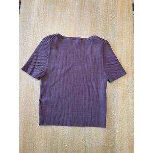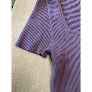 The perfect knit tee for sleek, minimalist dressing up. This supercropped, fitted short sleeve features a square neck and compact ribbing. Pair it with a blazer and wide-leg pant for an easy, yet elegant look.