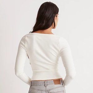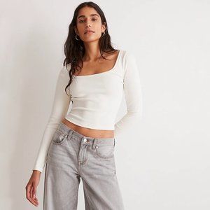 Long-sleeved cropped tee by Madewell, designed with a square neckline. Made from Madewell's soft and ribbed Sleekhold fabric (94% cotton, 6% elastane).