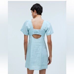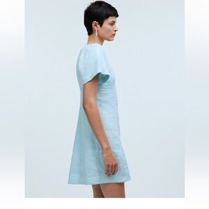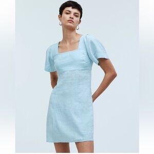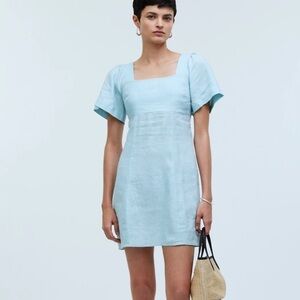 Madewell Square-Neck Mini Dress in 100% Linen blue heron