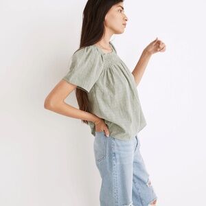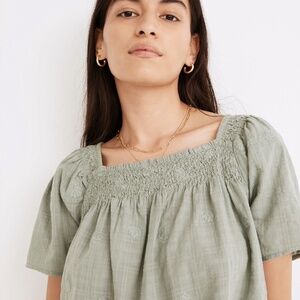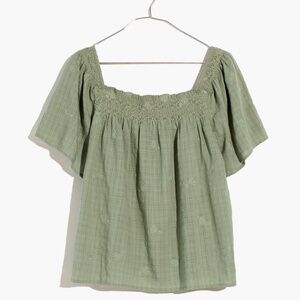 Madewell Square-Neck Smocked Top in Dotted Vines