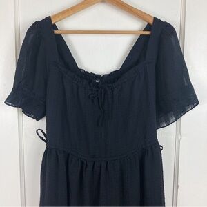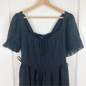 Made of drapey textured seersucker, this plaid square-neck dress has puff sleeves, floaty tiers and adjustable drawstrings at the waist.