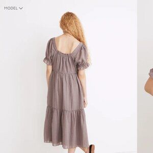 Madewell Square-Neck Tiered Midi Dress in Textured Seersucker