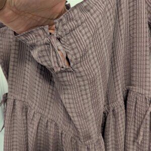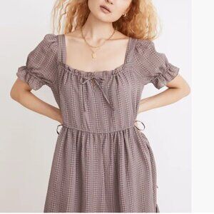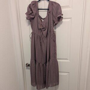 Made of drapey textured seersucker, this plaid square-neck dress has puff sleeves, floaty tiers and adjustable drawstrings at the waist (cinch for a little more definition—or untie after a particularly delicious meal). A versatile midi you'll definitely want in your closet.