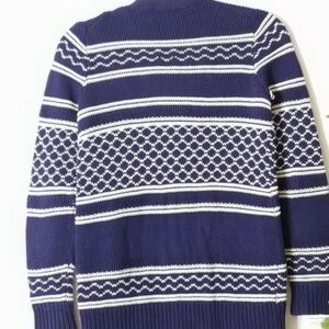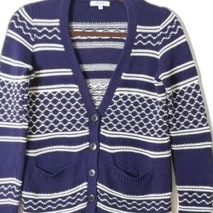 Fair isle Madewell cardigan. Navy blue and off white. Excellent used condition, no tears, rips or stains. Cardigan has 2 front pockets. 100% cotton.
