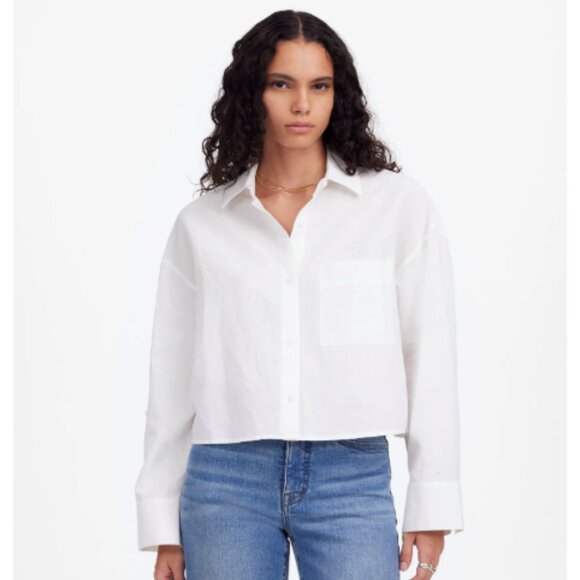 Coming in a lightweight linen-cotton blend, this button-up shirt is finished with a patch pocket at the chest, drop shoulders for a boxy fit and straight hem.