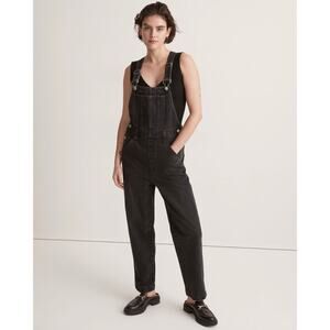 Madewell denim overalls, Madewell black overalls, straight leg denim, women’s utility overalls, relaxed fit overalls, vintage-inspired denim, non-stretch denim, casual Madewell outfit, Lunar Wash denim, workwear chic, minimalist wardrobe staple, street style denim