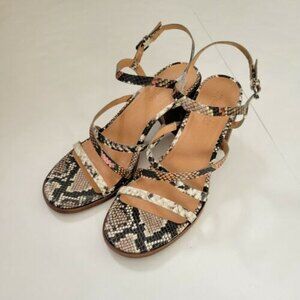 Madewell Strappy Sandal Leather block Heel Snake Embossed Women's Size 10 summer
