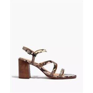 Madewell The Edie Sandal in Snake Embossed Leather size 9 strappy heeled sandals in textural snakeskin-stamped leather and cushiness with MWL Cloudlift Lite padding 3" heel.