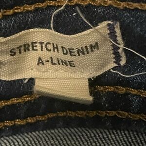 pockets for a low-key '70s vibe. Crafted from dark washed denim with a touch of stretch, it's a skirt as fuss-free as a pair of jeans. Looks so cool with a baby tee and low-key sneaks.