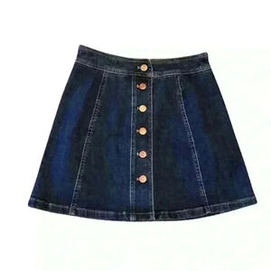 Madewell Stretch Denim Button Front A Line Mini Skirt Size 10 Retro Dark Wash