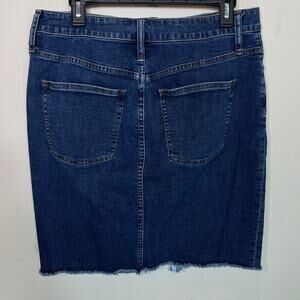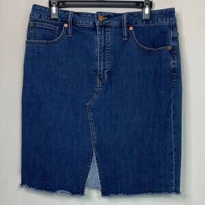 You'll love this Madewell Stretch Denim Pegged Skirt in Bellhaven Wash: Cutout Edition, size L! It is preowned but in great condition. There are no stains, tears, or holes. The size label was removed, so please make sure to check your measurements below to ensure a perfect fit! This style is sold out online, so grab it while you can!