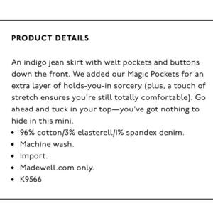 Madewell Stretch Denim Straight Mini Skirt in Marsden Wash K9566 Size 27