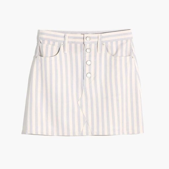 Madewell Stretch A-Line Denim Jean Mini Skirt in Pompano Stripe: Button-Front Edition Women’s