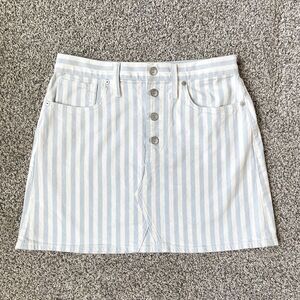 Madewell Stretch A-Line Denim Mini Skirt in Pompano Stripe - Size: 29