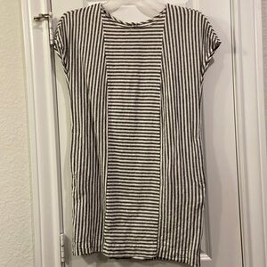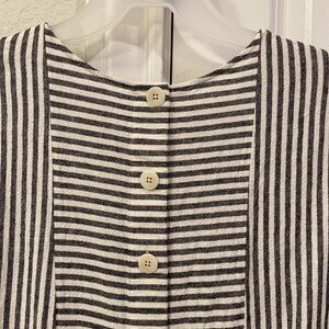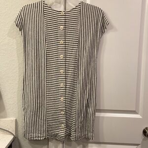 Lightweight and breezy, this striped dress has buttons all the way down the back.
