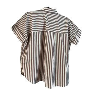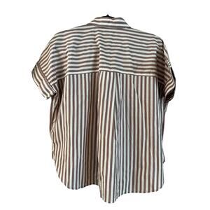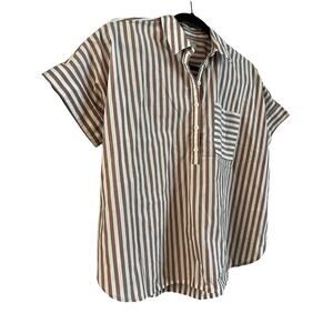 Madewell Stripe-Play Button-Up Popover Shirt Size Small Oversized Short Sleeve