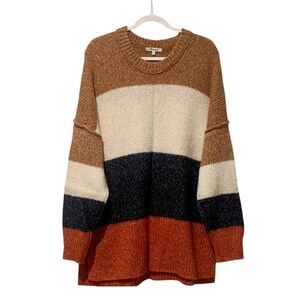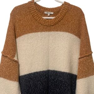 Madewell Striped Baxter Oversized Sweater Tunic Alpaca Blend Marled Umber XL