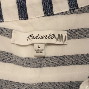 Madewell Striped Blue White Coastal Light Weight Raw Hem Button Up Top A14