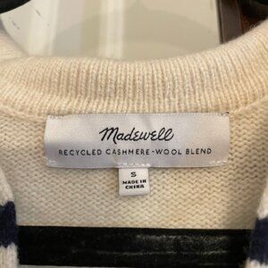 Great condition Madewell blue and cream striped cashmere blend polo sweater. Size small.