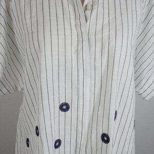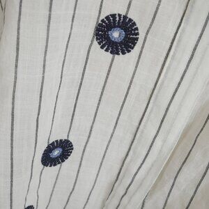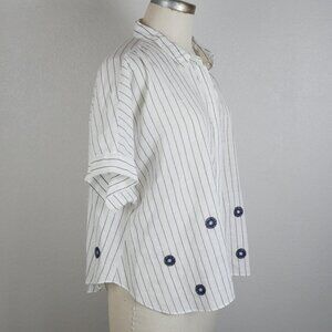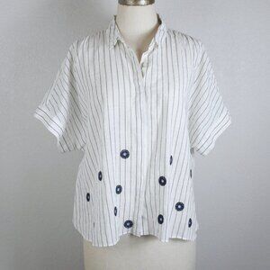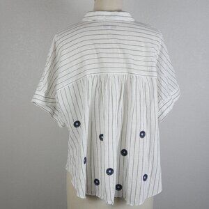 Madewell Striped Embroidered Button Up Blouse Top Short Sleeve XL white