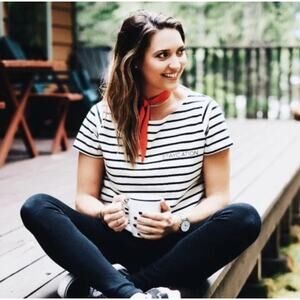 Madewell Striped Embroidered Staycation Crop Tee Size Large