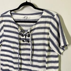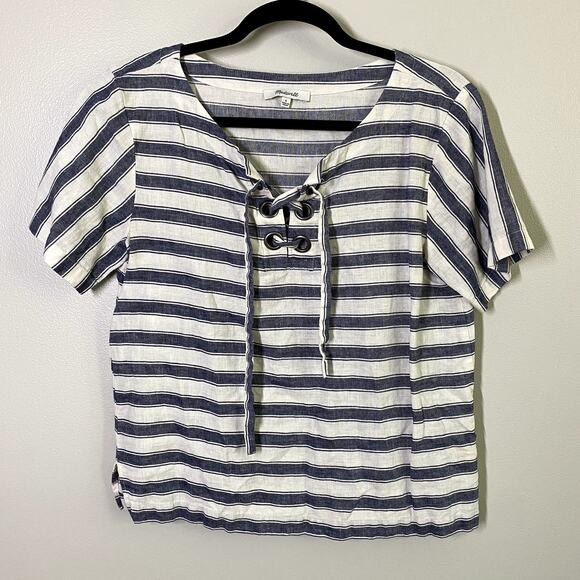 Madewell Striped Lace Up Short Sleeve Top Linen Cotton Blend Size S