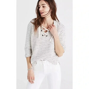 Madewell Striped Lace Up Top Size Medium